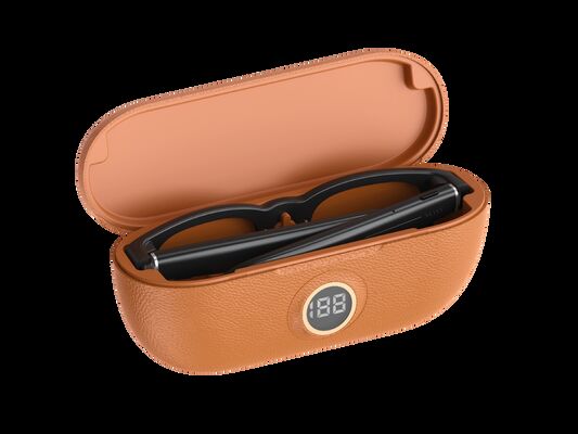 A:The glasses support 6-7 hours of music playback and 50 minutes of video recording; the charging case provides 3600mAh power and can charge the glasses multiple times.